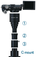1. 【Cマウント】 顕微鏡三眼鏡筒Cマウントへの取り付け